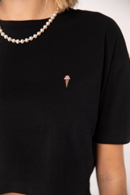 Eis | Besticktes Bio Baumwoll Crop Top
