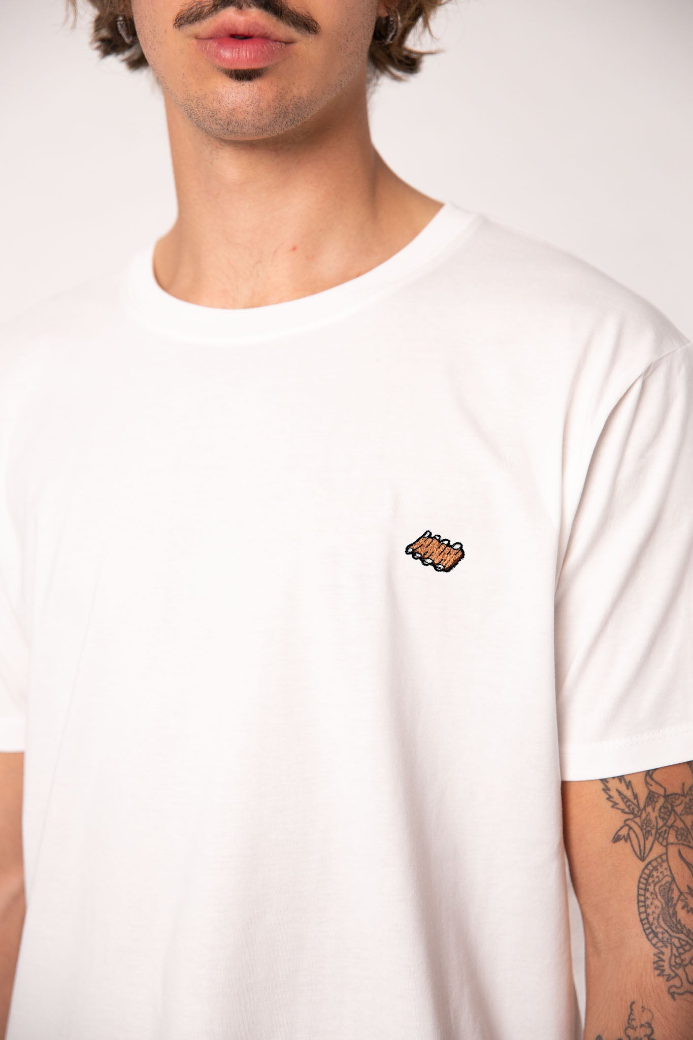 Hochwertig gestickte Motive auf lässigen T-Shirts von SNACKZ. Fair und nachhaltig produziert und...